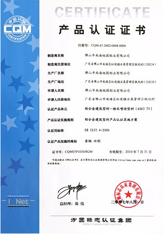 方圓標(biāo)志產(chǎn)品認(rèn)證證書