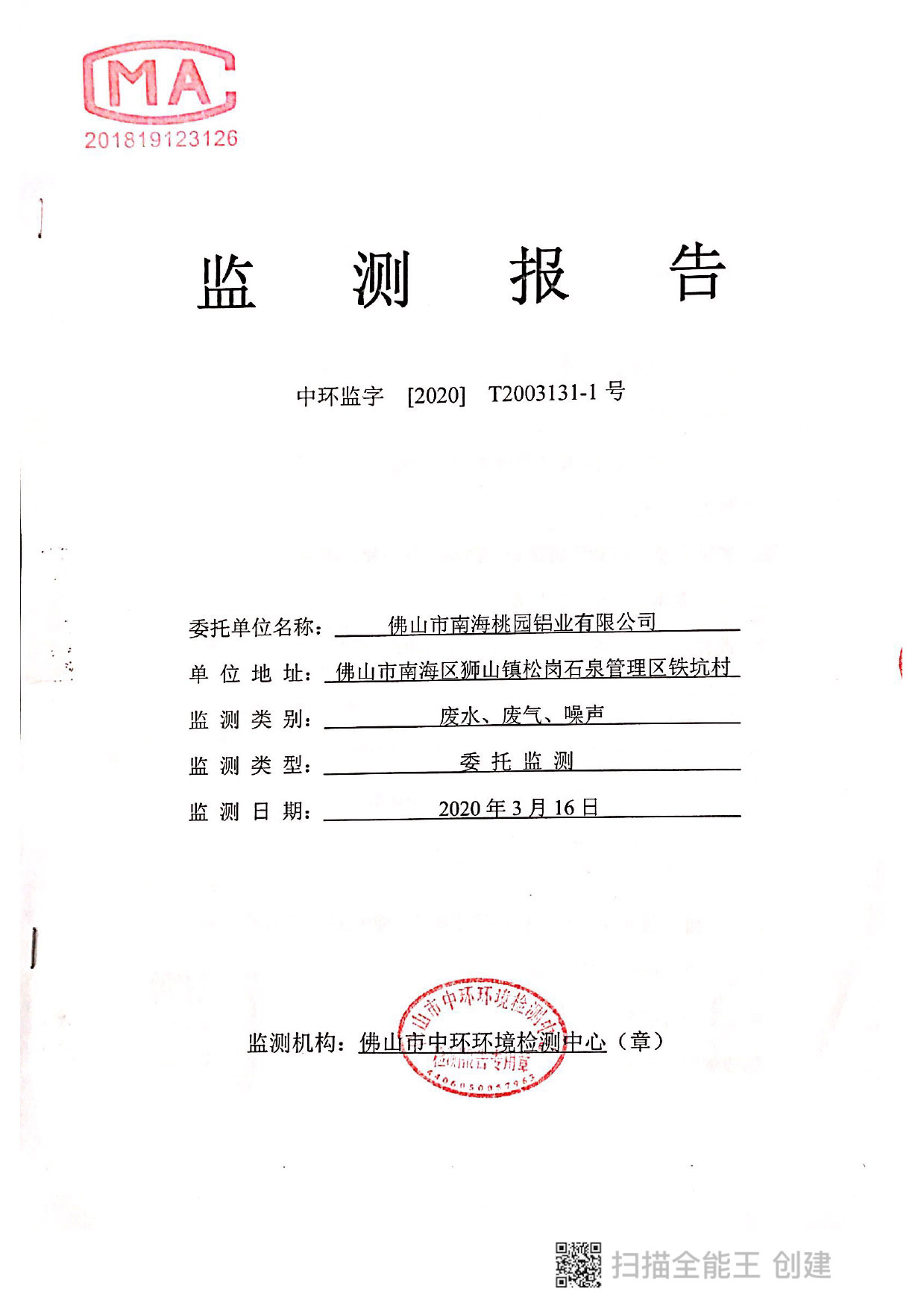 桃園鋁業(yè)2020年3月監(jiān)測(cè)報(bào)告
